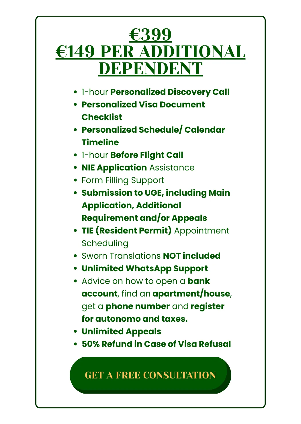 Perfect for those just starting and applying before arriving in Spain — with expert guidance at every step. Perfect for families who don't want the fast move.